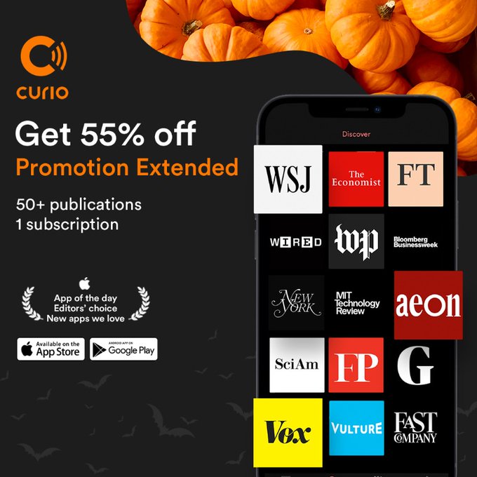Jack-o-lantern Get 55% off the new Curio, exclusively through this limited offer. Use code TWTR55 available on our website.
