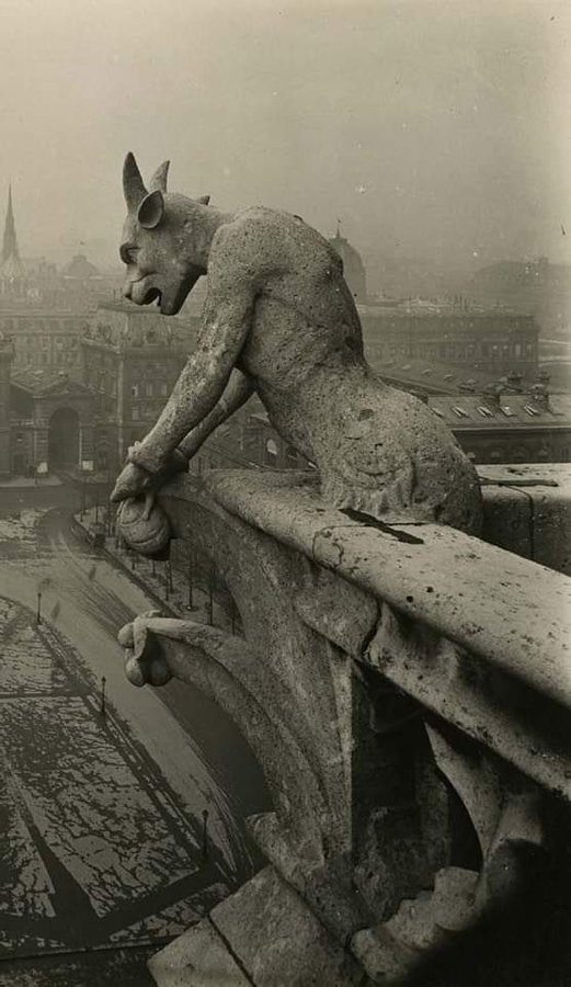 Arte y más @Arteymas_ · 20h Una gárgola de Notre Dame, 1920. Foto de Pierre Yves-Petit.